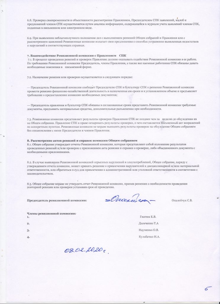 Проводить плановые общие собрания СПК «Прибой» ежеквартально первую субботу второго месяца.